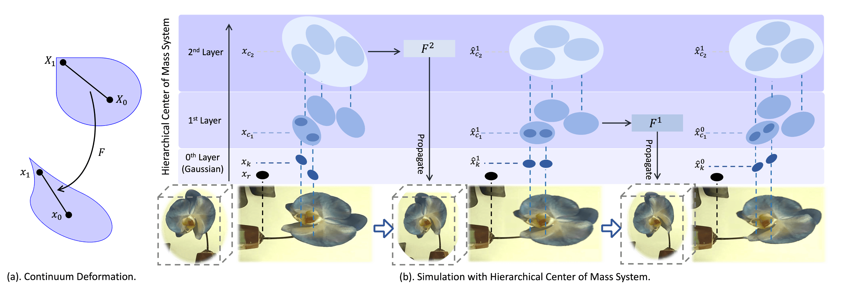 Continuum mechanics is a branch of physics that studies the behavior of materials by modeling them as continuous, rather than discrete, matter. It assumes that materials are continuous and uniform, allowing the analysis of their mechanical behavior (e.g., stress, strain, deformation) under various forces and conditions, which is generally applicable in real world. In this work, instead of discrete particle, we treat each Gaussian kernel as a CMS that describes continuous piece of matter, with a detailed explanation provided in the Appendix. Hence, our approach can model the deformation and dynamics of objects more accurately. This aligns with the principles of continuum mechanics, which focus on how materials respond to forces and deformations in a continuous domain. In the following sections, we explain how this is achievable on objects represented as Gaussian Splatting.